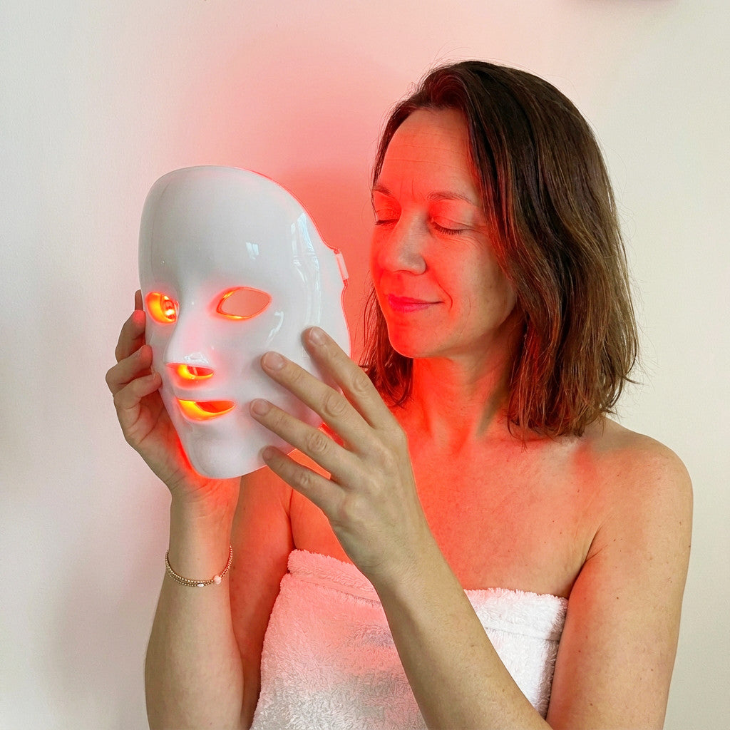 LED-Lichttherapie nutzt verschiedene Wellenlängen des Lichts, die unterschiedlich tief in deine Haut eindringen. Jede Farbe hat dabei ihre eigene "Aufgabe": Rotes Licht stimuliert die Kollagenproduktion, blaues Licht wirkt antibakteriell, grünes Licht beruhigt und gleicht aus.